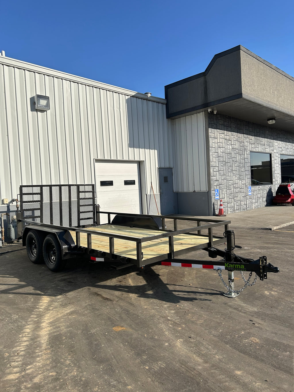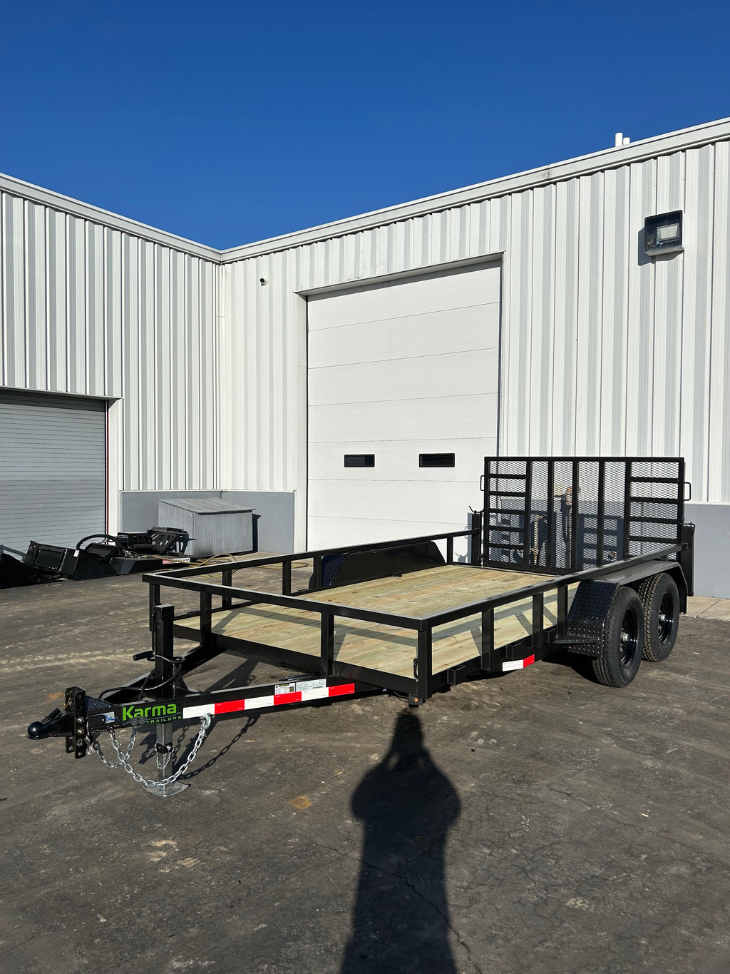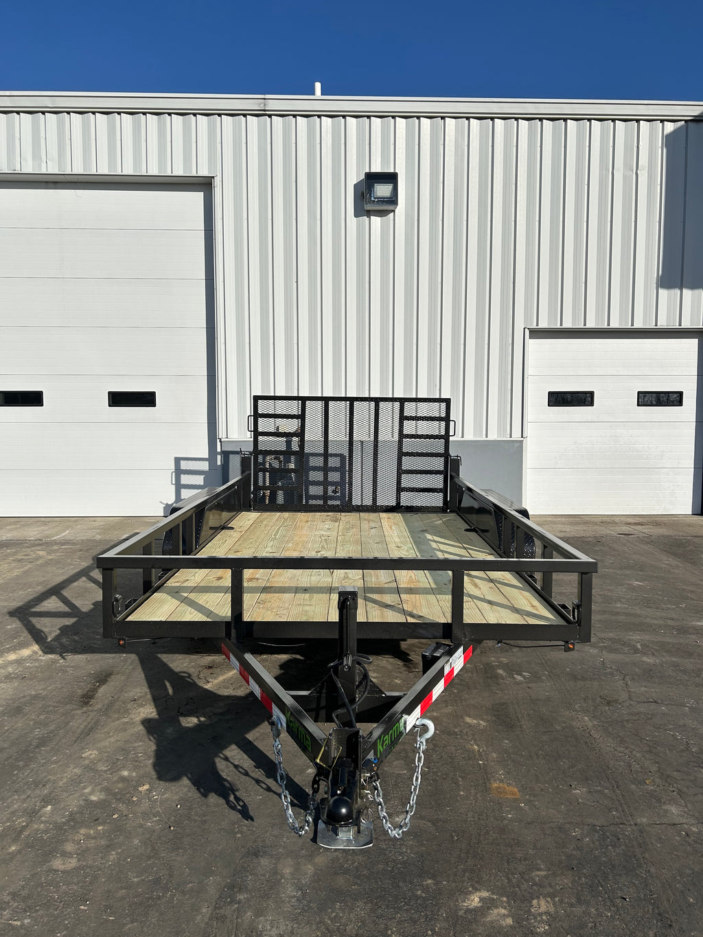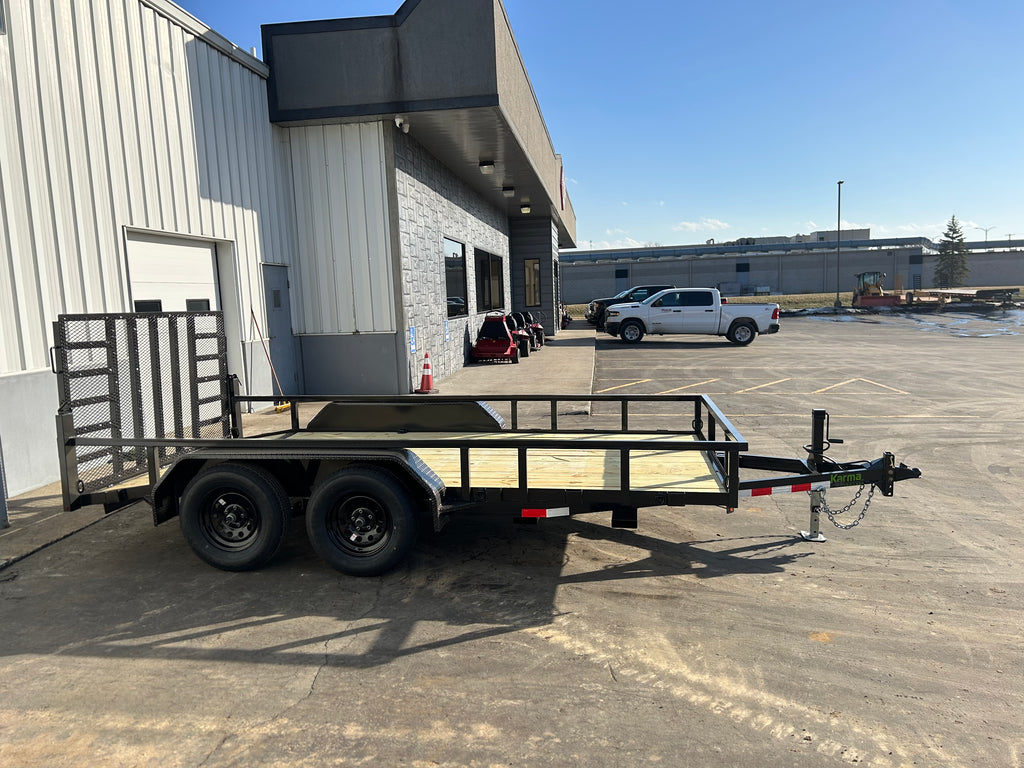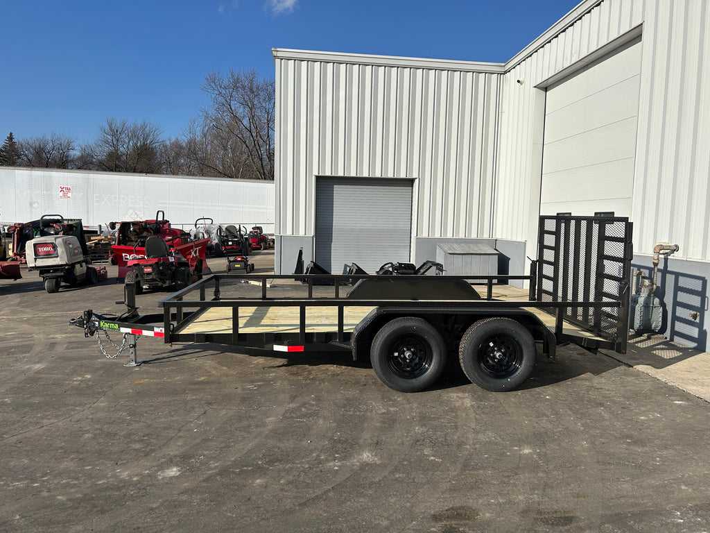 The Karma 7K Utility Trailer is ready to handle heavier equipment and materials with confidence. Available in multiple lengths, it features a heavy-duty ramp gate with support and a high-mounted brake light for added safety. Built with a rugged 1/4” angle frame on 16” centers, heavy-duty fenders, and a 2” square tubular rail with sturdy uprights, it’s made to withstand tough daily use.